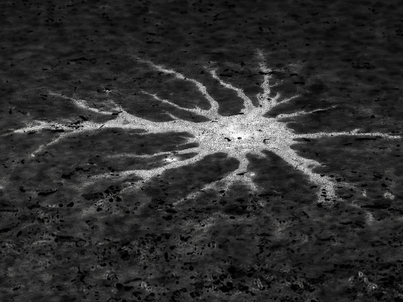 It was the shape that caught my eye, but the tones make the image. I started with the above and then reversed all the tones to make a "negative." Now that white shape leaps our in a sort of threatening way. I find myself wanting to hum the opening theme to The Twilight Zone.