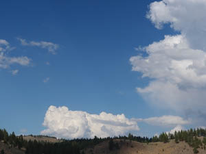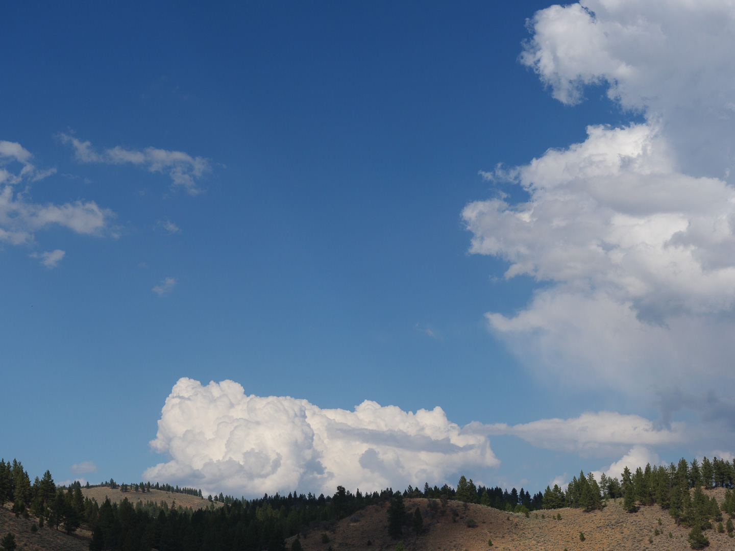 In the above capture, there isn't a relationship between the clouds up the right side of the image and that big one on the horizon. In fact, the position of the two creates that large almost empty blue sky that dominates the upper left.