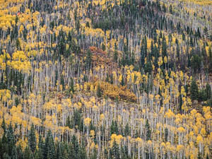 Again, I turn to fog as the "plus" element in the image at left. The element that attracted me was the fir tree (or is it a pine?) mixed into all the fall colors. This is a great example of what I've called, "Brooks' rule of threes" — not thirds, but threes. Three elements in a composition magnify the number of possible relationships. This one has yellow, fir, fog and I suppose I could add the leafless branches of some of the trees. Pictures that have three compositional elements tend to be more interesting than just one or two. |