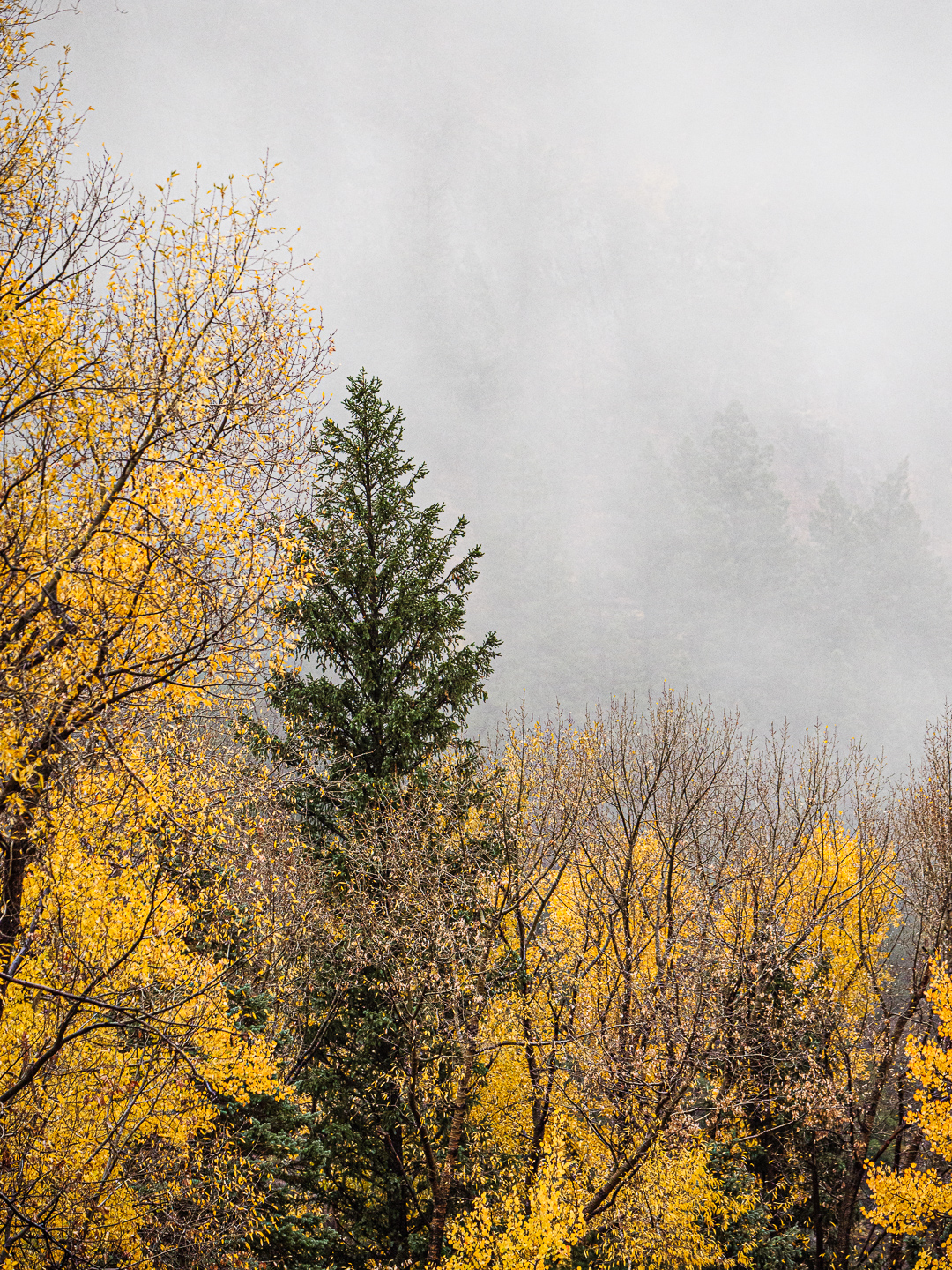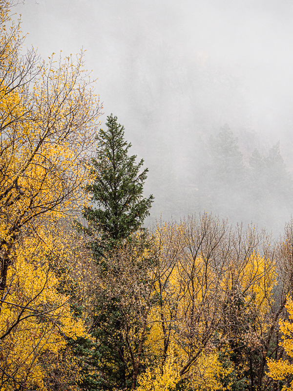 Fall colors are a favorite for many photographers, myself included. Eventually, however, splashes of yellow after splashes of yellow can get a little repetitious. That's when to start looking for some additional element that goes beyond more or more intense yellows. One of my favorite plus elements is atmosphere — clouds, mist, fog, haze — anything that makes the air visible. As Jay Maisel said, "Never trust air you can't see."