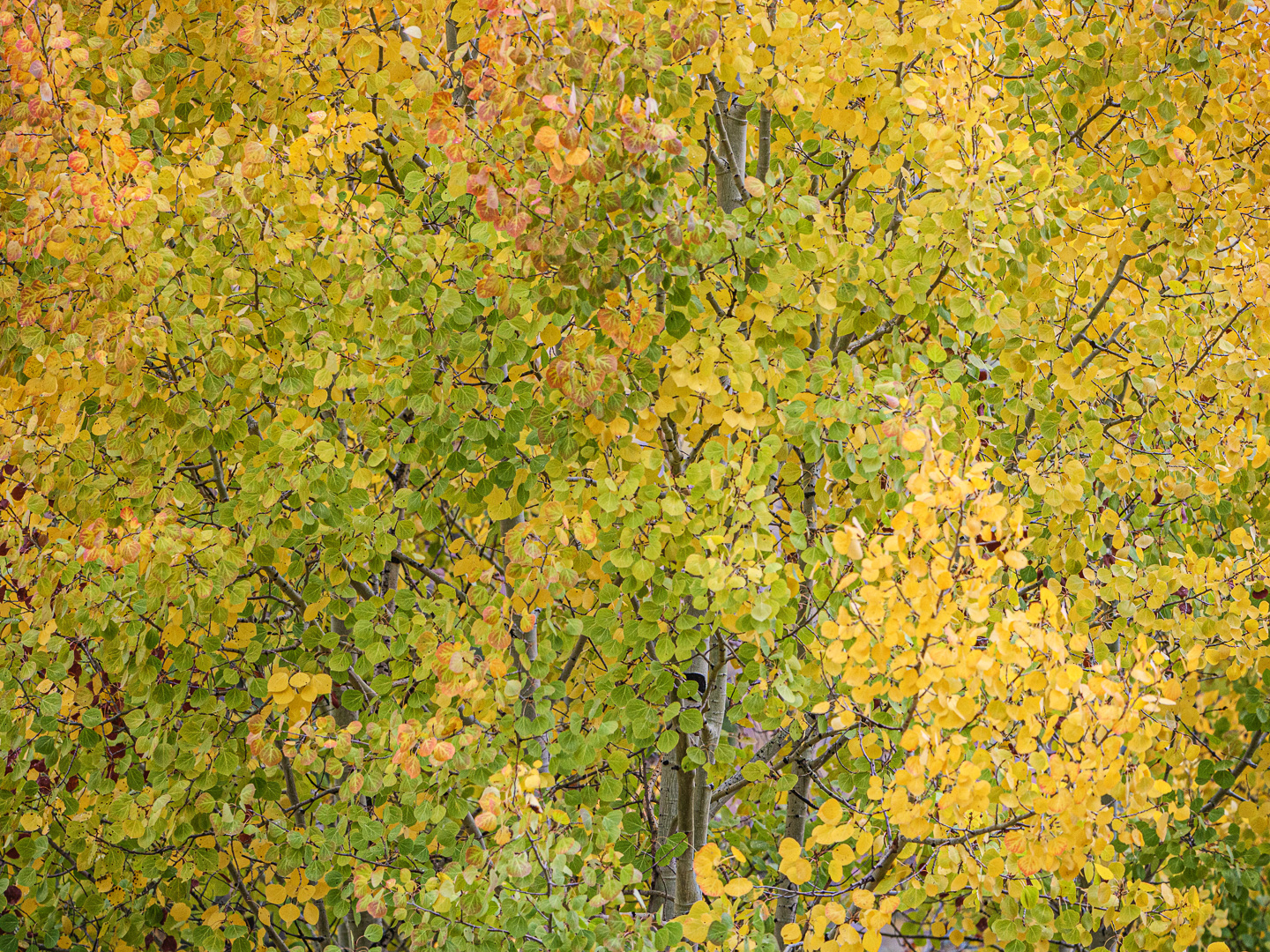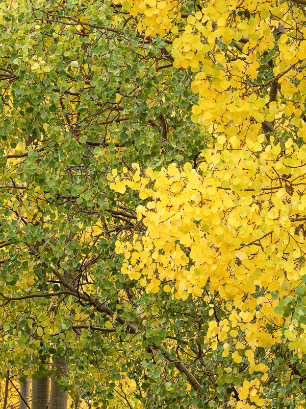 At this point in time, in the image at left I like those large trunks of the aspen in the lower left corner. I may or may not retain that thought as time goes on. If I decide to eliminate them, it will be easy enough with AI Remove.. |