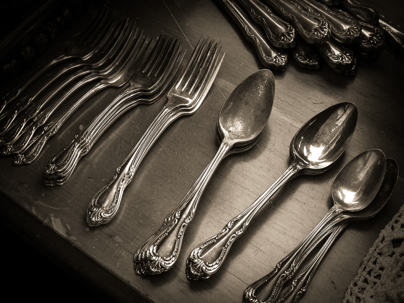 As I photographed this subject — in numerous locations and over years — the less I was interested in dinnerware as a subject. I needed some other thread to bind them other than the simple fact that they were all knives, forks, and spoons.
