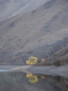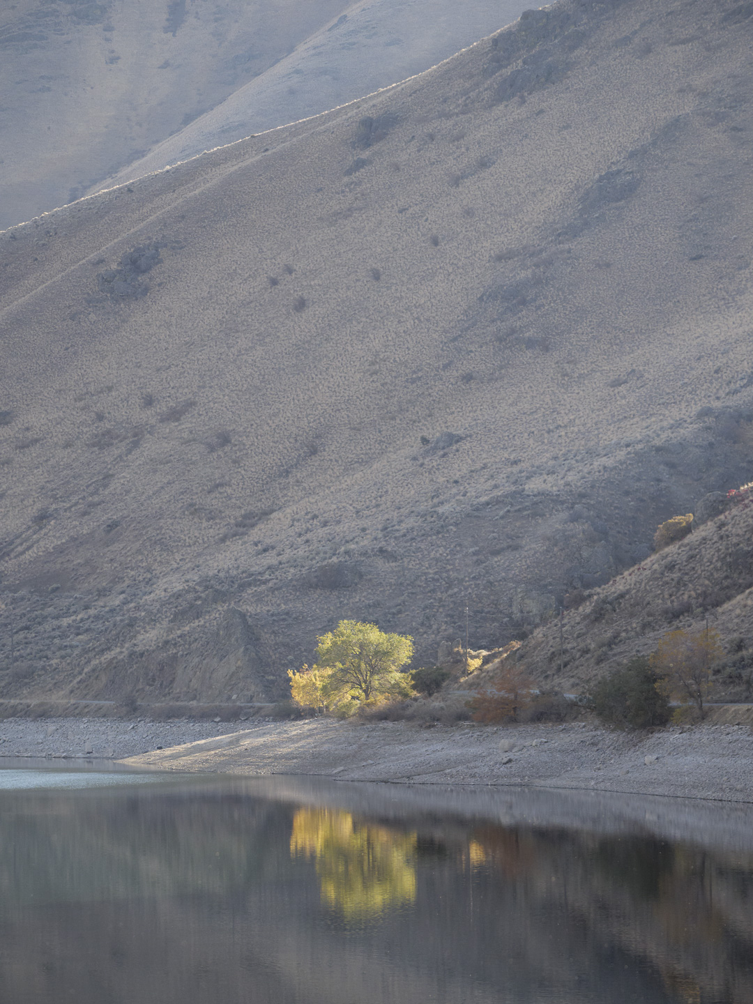 I was racing to get this shot of the yellow leaves on the river's edge before the big truck drove past it predictably kicking up a cloud of dust from the dirt road.