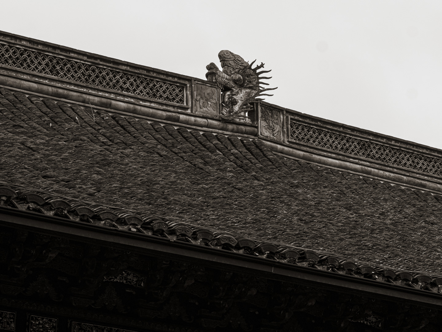 Although the above puts the dragon in context of the roof, it's too small to see the details that are so interesting.