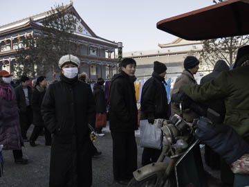 The hectic hubbub of an outdoor market in China on a day that was well below freezing.