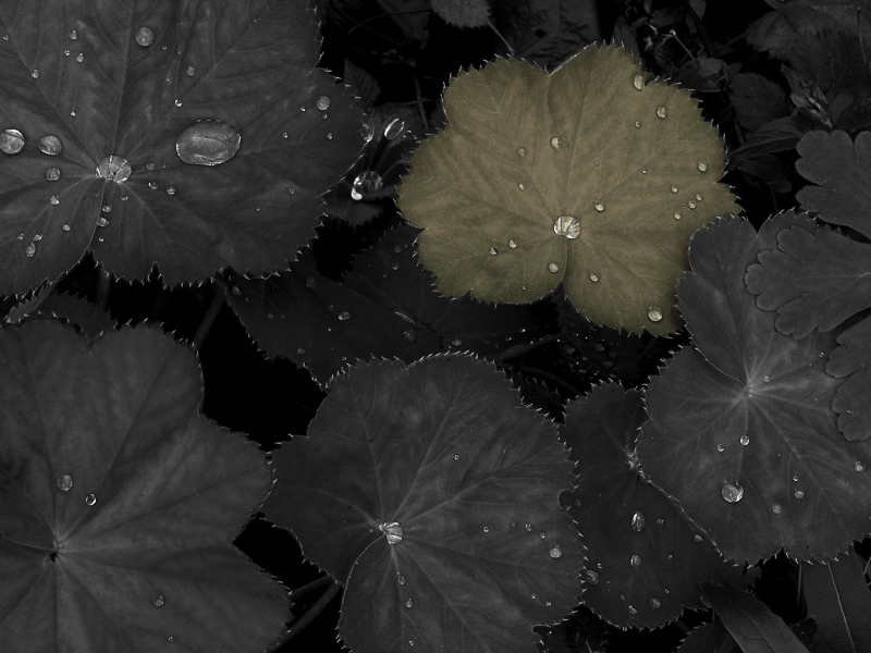The green RAW capture is okay, but just shows what the rain-covered plant looks like. As an illustrative photograph, it could almost be used in plant identification book. It's not art.