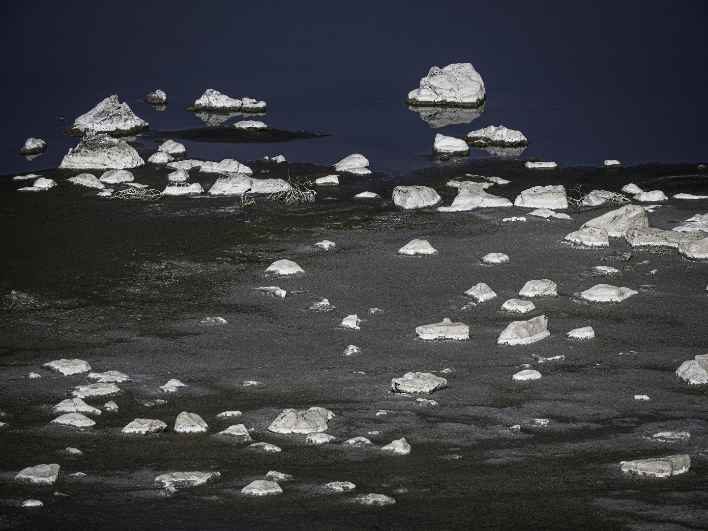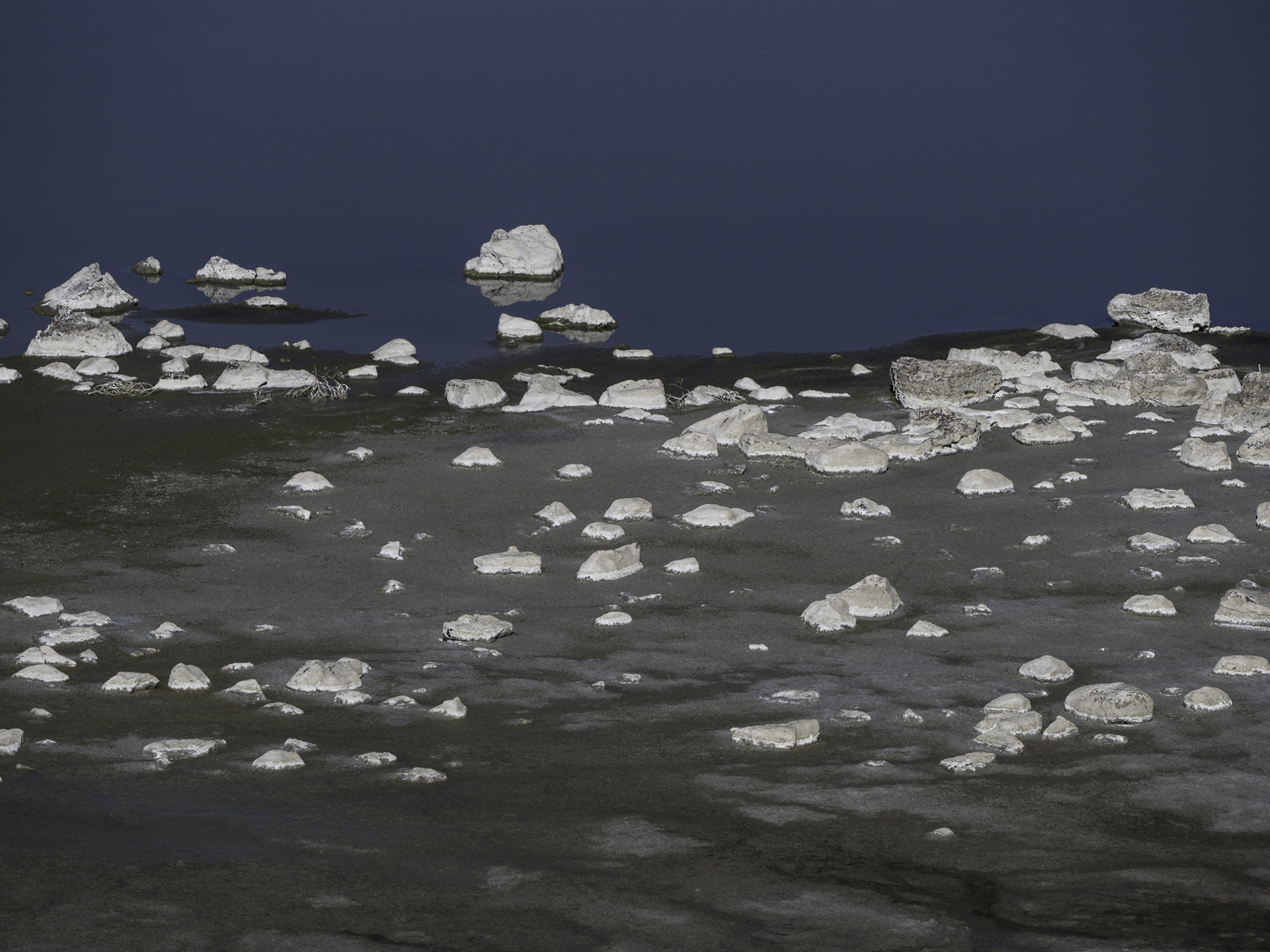 Strange how the land and rocks feel like they are in b/w and the only color is in the blue of the lake water. In fact, this is a full color image with almost no processing at all. |