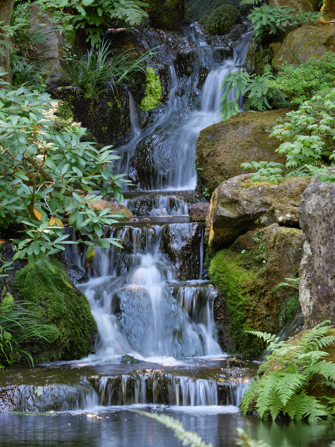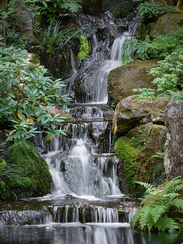 How can a sharp image be made handheld at 1/4 second? Two tricks. First brace the camera on something — in this case, my knee as I sat on a bench. The second trick is to shoot in burst mode with the idea being that you might get one that is perfectly in focus in the cluster of duplicates. In this example, I got lucky because I only shot a burst of 4 captures. Capture #3 was the sharp one that gave me movement in the water but tack sharp plants in the rest of the image.