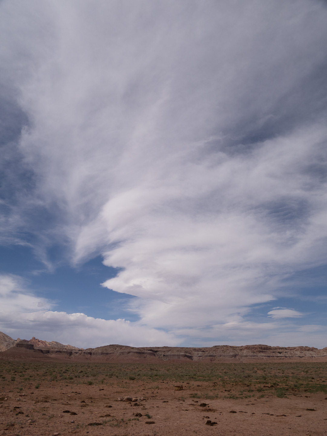 After converting to a monochromatic rendition, it was easy to add contrast and texture to the clouds. Still, the land was bland. I made a selection of the foreground and punched up the contrast and clarity to bring the land a bit more life. Interestingly enough, that makes the clouds even more dramatic. This is a common occurrence in my landscape photography — that there are two areas (sky and land) that require different processing to make them look right and still blend together in the image. |