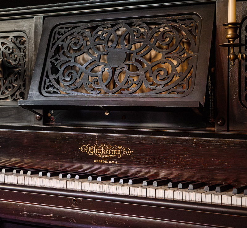 In retrospect, I know better. I should have taken half and hour or so to just walk around, looking in the various rooms and assembling a rough "shot list." Not a bad practice and one that slows down the process. The image at left is the result of looking more seriously at the piano and paying attention to the edges, the light, the textures, and reflections. Lesson for myself: Excitement is good, but too much excitement just leads to frenetic sloppiness. |