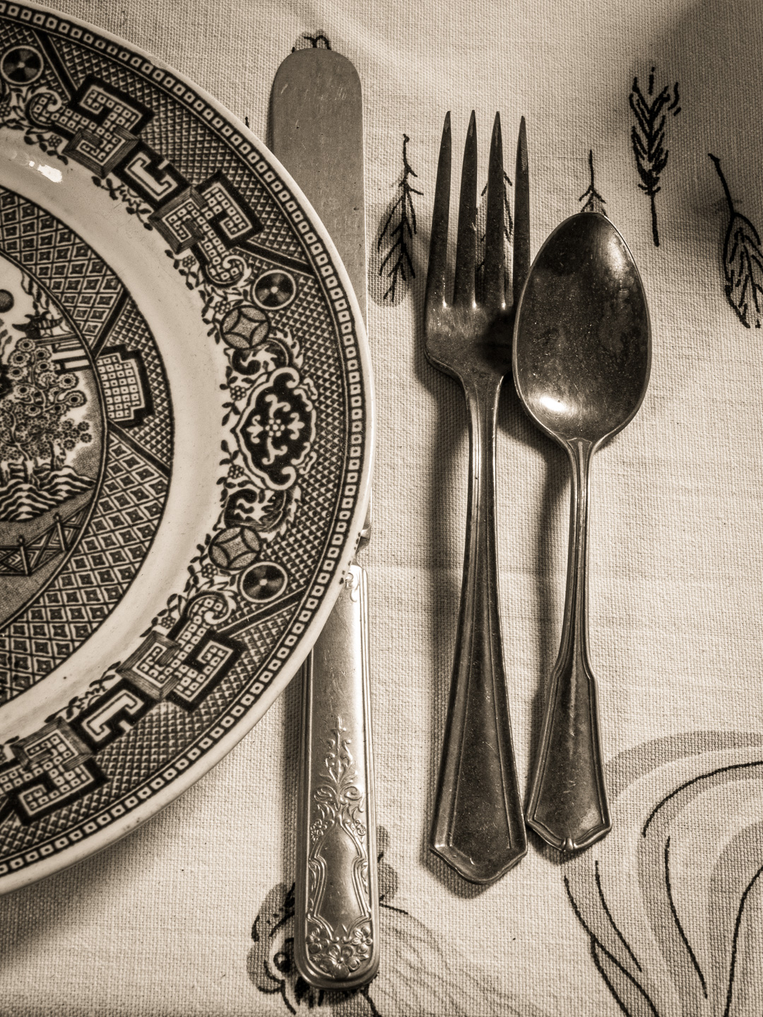 As I photographed this subject — in numerous locations and over years — the less I was interested in dinnerware as a subject. I needed some other thread to bind them other than the simple fact that they were all knives, forks, and spoons.
