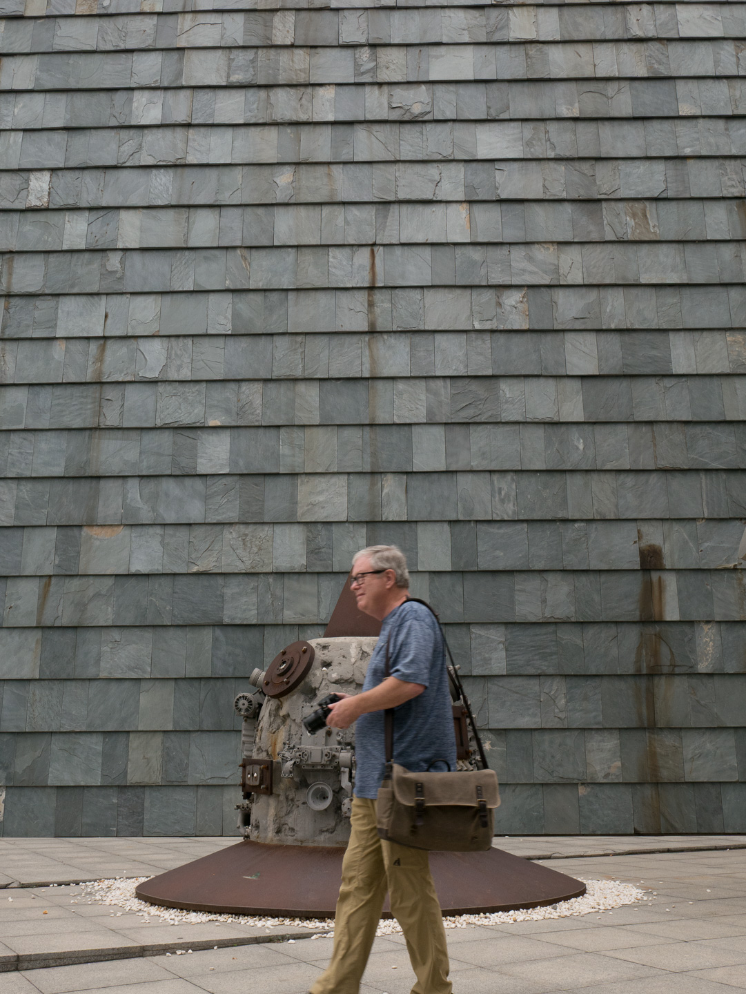 We never know where or from what inspiration a project idea might be born. In Beijing, China, we visited the cultural university there. In the above snapshot you can see fellow photographer Doug Ethridge walking in front of the outside wall of the building. I found the tiles on the wall to be visually fascinating, but I had no idea what to do with them. I just fired away and captured 100 or so compositional details in the slate.