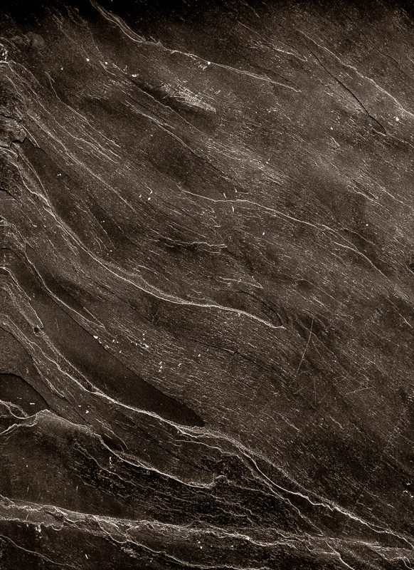 Long after we'd returned, I was looking at these images with no idea how to turn them into something expressive. When this happens, I often turn to a strategy I call PBPA — Photography By Pooping Around. Once I had darkened the exposures and pushed the contrast high enough, the patterns in the slate started to remind me of angry ocean waves. The seed of an idea was planted.